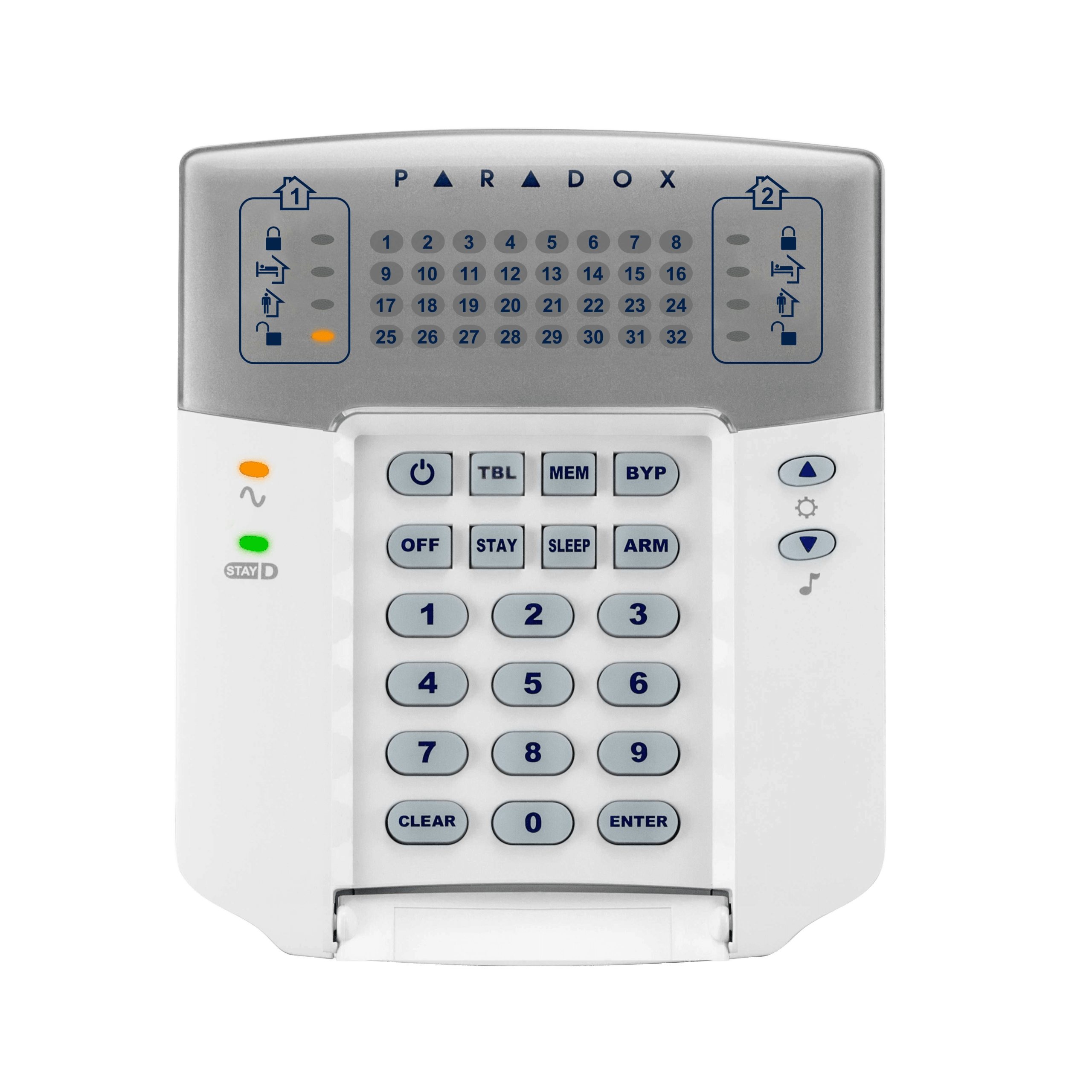 A robust and reliable hardwired keypad that provides comprehensive control over 32 zones in your Paradox security system.