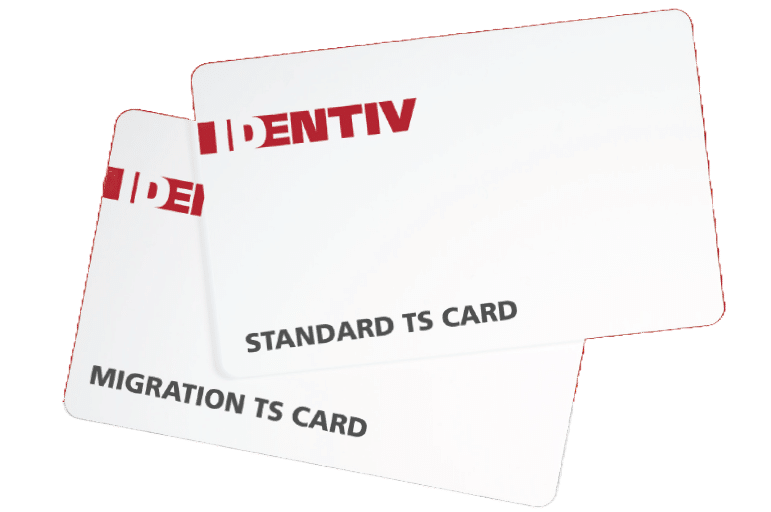 Identiv’s uTrust TS Cards are modern, secure credentials for physical access control, based on NXP® ‘s MIFARE DESFire high-frequency (HF) 13.56 MHz technology, and are compatible with 125 kHz LF proximity card systems. Standards-based card technology (MIFARE DESFire EV1 or EV2), combined with a published encoding profile, enables easy integration into third-party products (e.g., other OEM reader products, printers, etc.).
